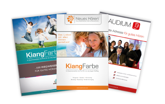 Die KlangFarbe ist mehr als nur eine Informationsbroschüre. Auf Wunsch wird der Umschlag der KlangFarbe an das Erscheinungsbild Ihres Unternehmens angepasst und individuell nach Ihren Wünschen gestaltet. Damit ist sie Ihre persönliche Imagebroschüre und gibt Ihnen die Möglichkeit, sich Ihren Kunden professionell zu präsentieren. Rund 80 % der Hörgeschädigten sind fremdbestimmt. Nutzen Sie die KlangFarbe in der Beratung und Anpassung, um Ihre Kunden und deren Angehörige genau über das Thema „Hörsysteme“ zu informieren. Denn nur gut informierte Kunden kaufen hochwertig!